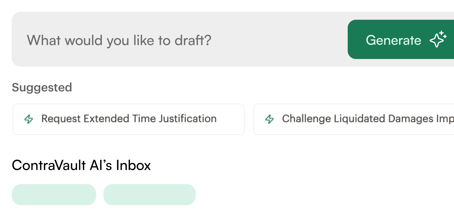 Type what you need (EOT, Delay rebuttal, compensation, clarification, reservation of rights) and Claims Studio generates a review-ready draft using the full letter chain + key context - so your team edits instead of starting from scratch.