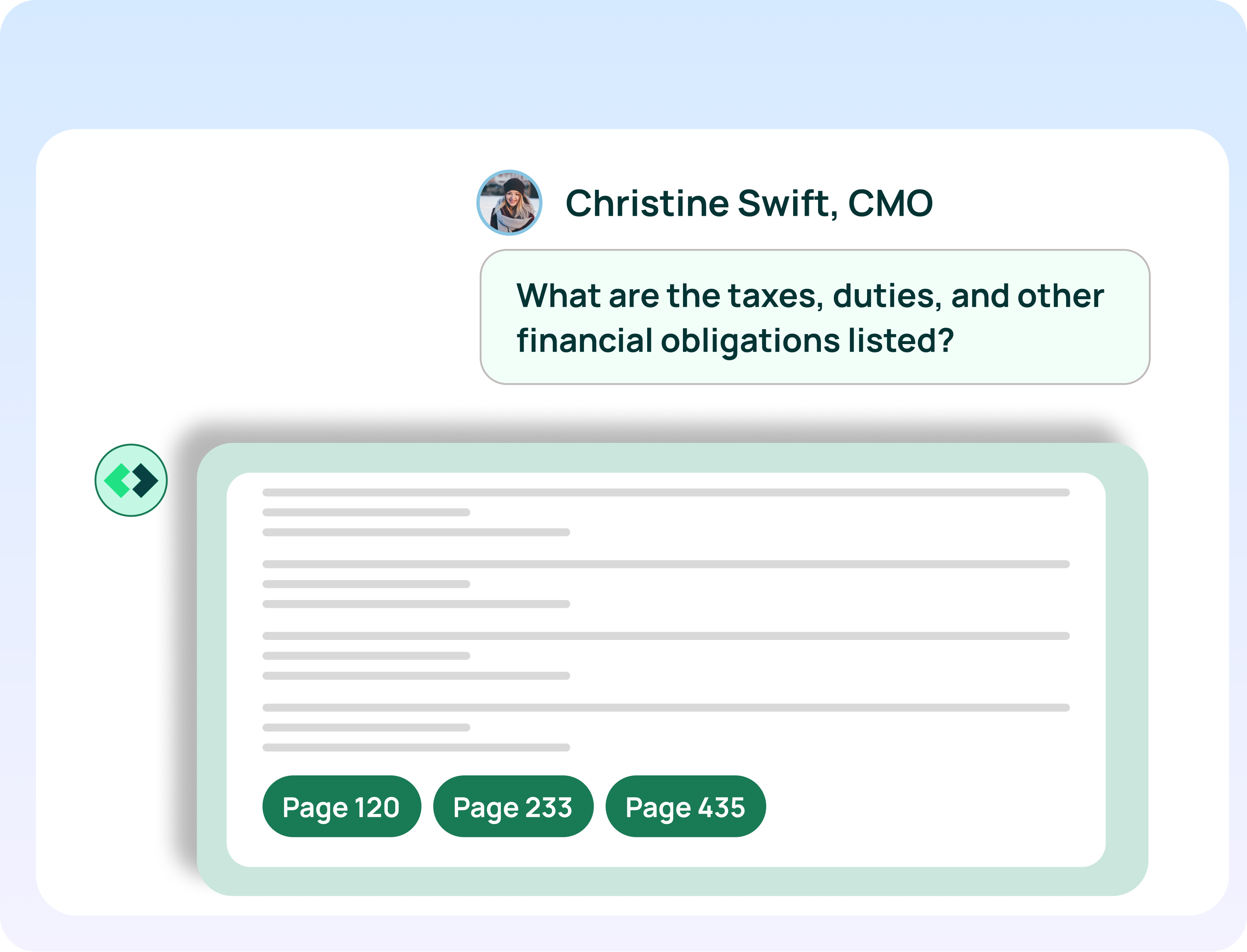 Every answer links directly back to the clause and page - defensible in audits and internal reviews.