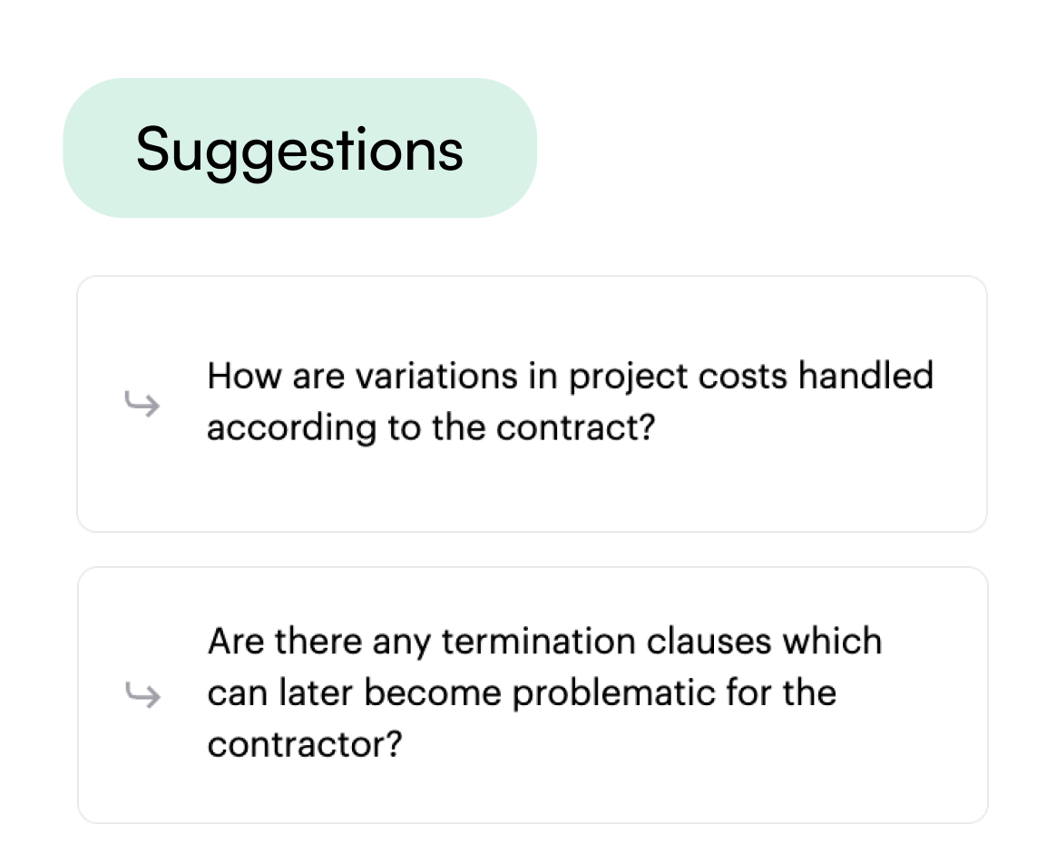 AI retrieves the exact clause and page reference, plus a plain-English explanation of what it means.