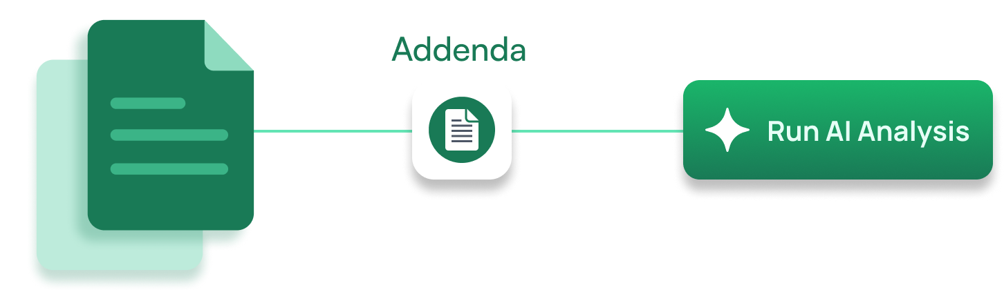 Auto-diffs each addendum, re-runs only affected checks, and highlights what changed - no full re-read.