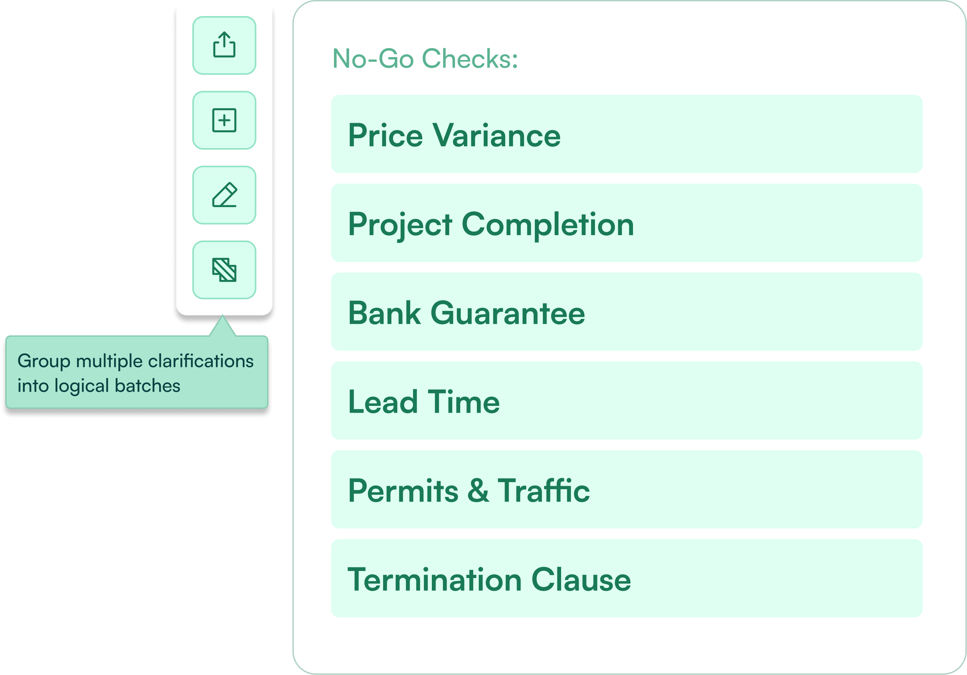 Your team can edit AI suggestions, group multiple clarifications into logical batches, and add technical context before submission.